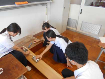 理科 斜面を降りる台車の運動を調べました。斜面が緩やかな場合、急な場合の違いをレポートにまとめました。