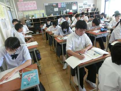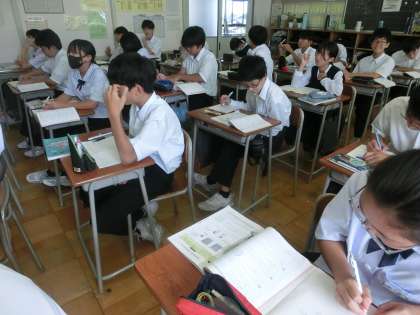 1A 学習の様子 公開日 2024/10/02 更新日 2024/10/02 学校生活 数学 関数の学習です。どのようなときにyはxの関数といえるのかについて確認しました。「縦×横=面積」「距離=速さ×時間」の式が関数であるということが分かりました。