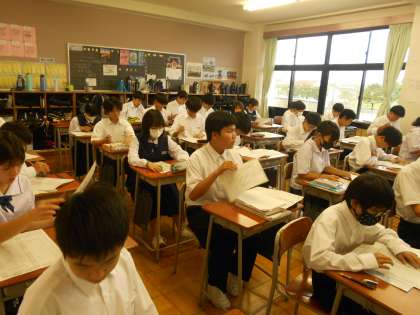 1A学習の様子 公開日 2024/10/04 更新日 2024/10/04 学校生活 中間考査2日目が終わりました。まだ慣れない定期考査かもしれませんが、時間いっぱい頑張りました。早速返却されたテストもありました。よく見直しましょう。