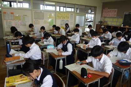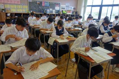 英語の授業にテストが返却されました。 各自で見直しています。今回の反省を次に生かしましょう!