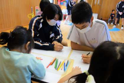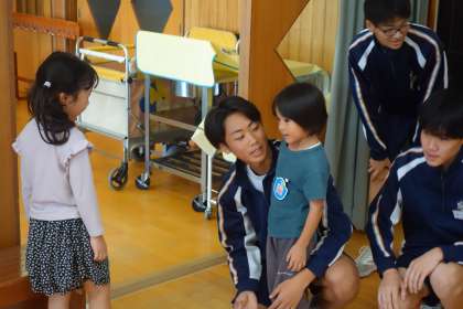 中学生と園児では、最初はお互いに緊張した様子も見られましたが、徐々に打ち解けて会話も弾みました。