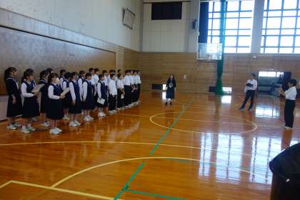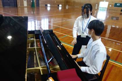 体育館で練習しました。 本番を意識して、集中して練習しています。