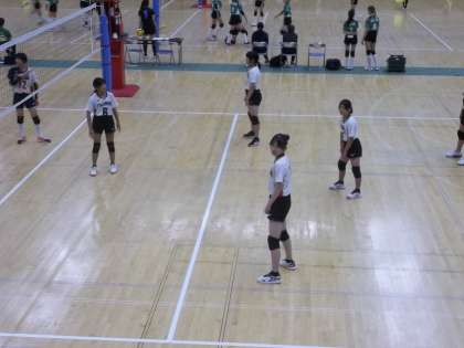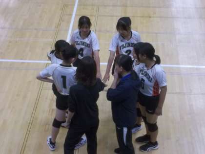 バレーボール部の試合の様子です。 藤ノ木中学校の生徒と力を合わせて、懸命に戦いました。