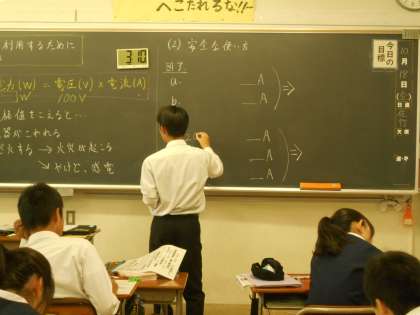 2A学習の様子 公開日 2024/10/18 更新日 2024/10/18 学校生活 技術 「電力=電圧×電流」を学び、家庭の電化製品、たこ足回線について考える機会になりました。大切な公式です。しっかり覚えましょう。