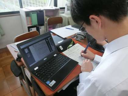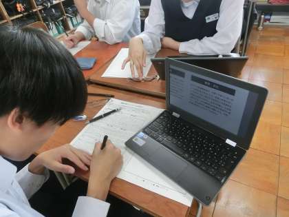 3A 学習の様子 公開日 2024/10/23 更新日 2024/10/23 学校生活 社会 「模擬選挙をしてみよう」という課題で、現在富山県の衆議院と知事選挙に出馬していいる候補者について調べ学習を行っています。