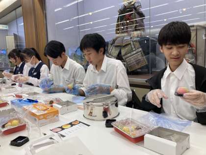 2年生 金沢校外学習 公開日 2024/10/25 更新日 2024/10/25 2年生 石川県観光物産館で和菓子づくり体験を行いました。こしあんを生地に挟むところに苦戦していましたが、一つ一つの工程に丁寧に取り組みました。手作りの和菓子をそれぞれの家庭に持ち帰ります。土産話とともにお楽しみください。
