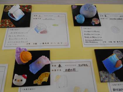 樹脂粘土でつくった和菓子を展示しています。季節を設定して、自分のイメージをもとに丁寧に仕上げました。