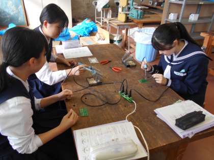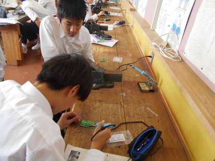 技術 「はんだづけ」の作業をしました。初めて「はんだごて」を使いましたが、シミュレーションをしてから臨んだので、うまくできた生徒が多かったようです。やけどに気をつけて次回も頑張りましょう。