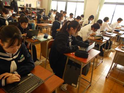 英語 端末を利用して、今まで習った単語、文法を確認しました。