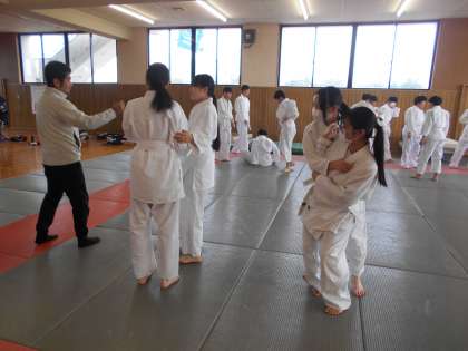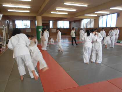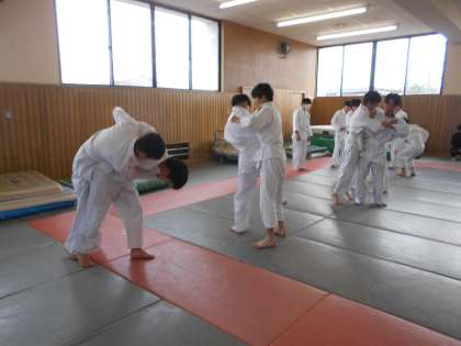 柔道の授業です。どんどん技を覚え、練習しています。