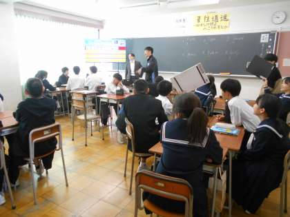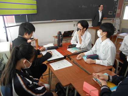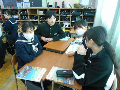 ALTの先生との授業です。イラストを見ながら、どんどん英文を考えていきます。