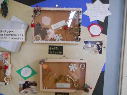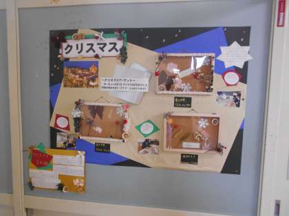 若竹級 掲示物 公開日 2024/12/02 更新日 2024/12/02 学校生活 若竹級の前に、素敵なクリスマス飾りが昨日から飾られています。ドライフラワーや自分好みのパーツを選んで作成したそうです。ドイツのクリスマスマーケットやクリスマスの歴史についても調べてありました。