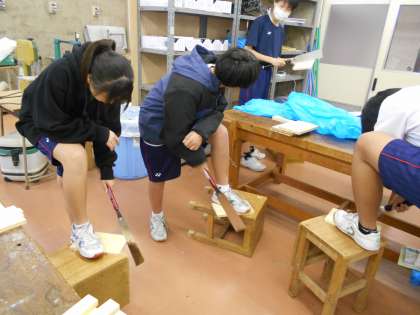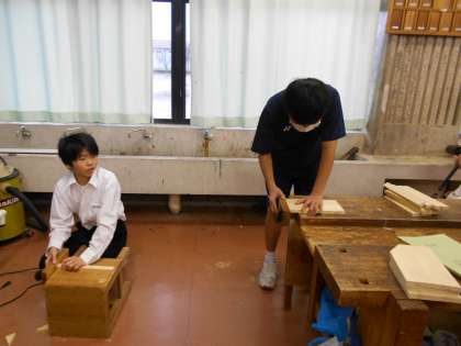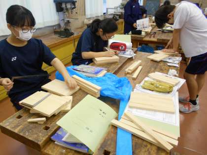 1A学習の様子 公開日 2024/12/06 更新日 2024/12/06 学校生活 技術 本立て作りの最中です。のこぎりでの切断作業を頑張っています。今日から「かんな」を使って切削作業を始める生徒もいました。