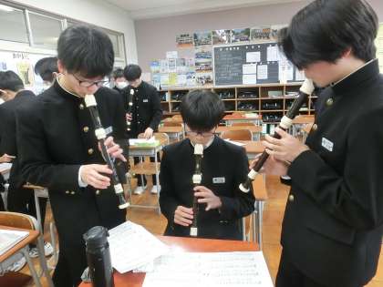 音楽 カントリーロード(英語)を歌ったり、アルトリコーダーで演奏したりしています。