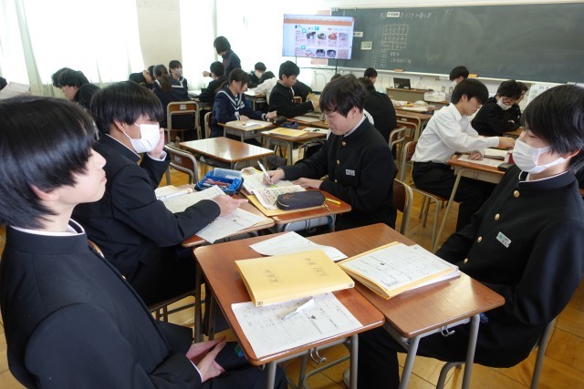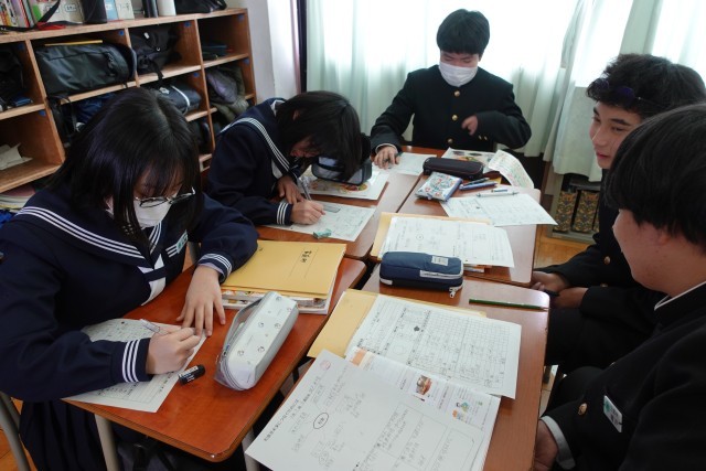 家庭科の授業で、調理実習に向けての計画を立てています。