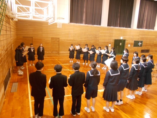 3月5日(水)式歌練習 公開日 2025/03/06 更新日 2025/03/05 学校行事 来週の卒業式に向けて、1、2年生合同の式歌練習が始まりました。2年生のリーダーズを中心に、真剣に練習していました。素晴らしい合唱で卒業生を送り出したいですね。明日も頑張りましょう!