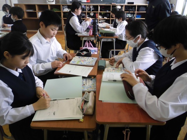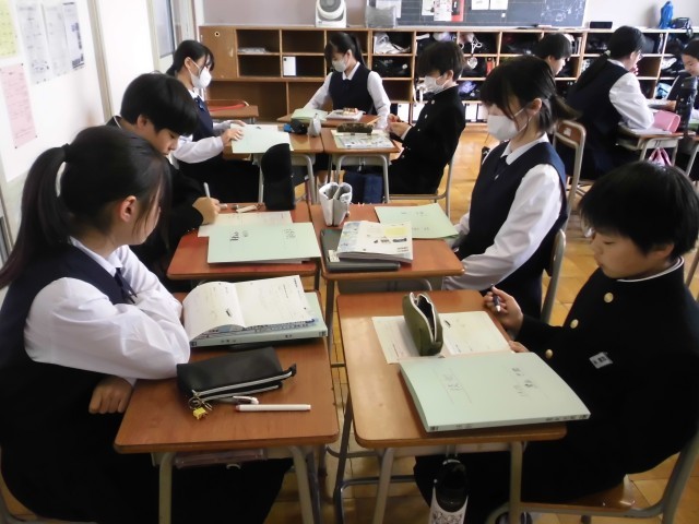 学習の様子 1年 公開日 2025/05/09 更新日 2025/05/09 1年生 技術 身の回りの製品にはどんな工夫や仕組みがあるのか考え、班で共有しました。学校で使っている机について「安全性が考えられている」「脚のゴムによってぐらつきにくい」などの意見が出ていました。