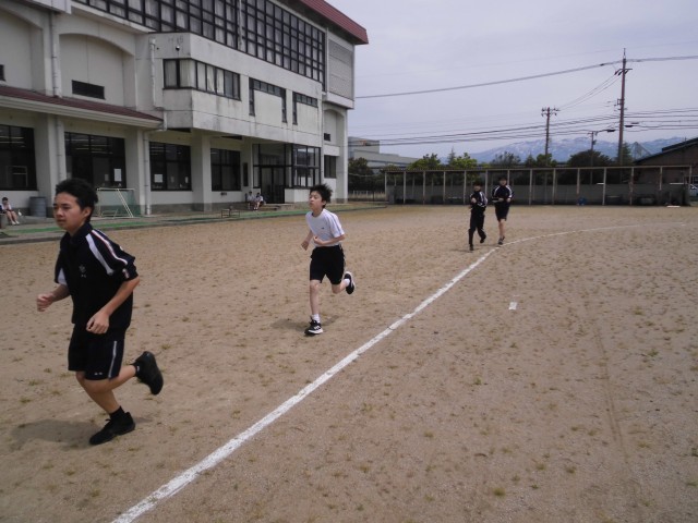 学習の様子 3年 公開日 2025/05/09 更新日 2025/05/09 3年生 体育 長距離走の計測に備えて男子は6周、女子は4周グラウンドを走りました。各自ペースを守って頑張って走りきりました。