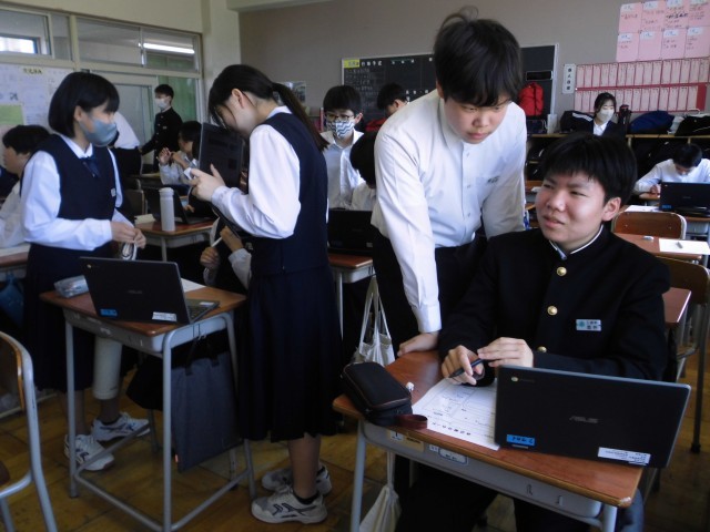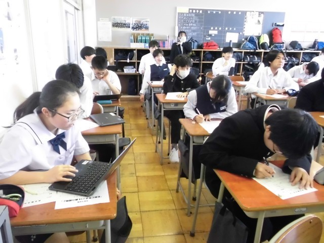 学習の様子 2年 公開日 2025/05/13 更新日 2025/05/13 2年生 道徳 14歳の挑戦に向けて動き出しています。今日は、事業所の方にお渡しする自己紹介カードを書きました。失礼のないよう、丁寧な字で言葉遣いに気をつけて書きました。