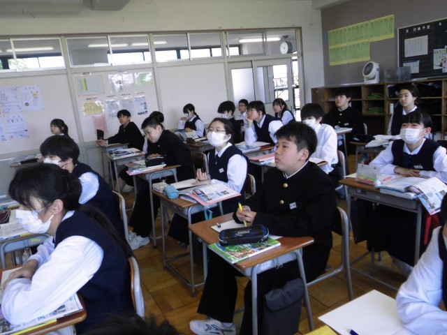 学習の様子 1年 公開日 2025/05/13 更新日 2025/05/13 1年生 社会 地球上の位置によって、時刻が異なるのはなぜか考えました。日本から近い国は時差が小さい、遠い国は時差が大きいということをい知っている生徒は多くいました。次回は時差の計算を習います。