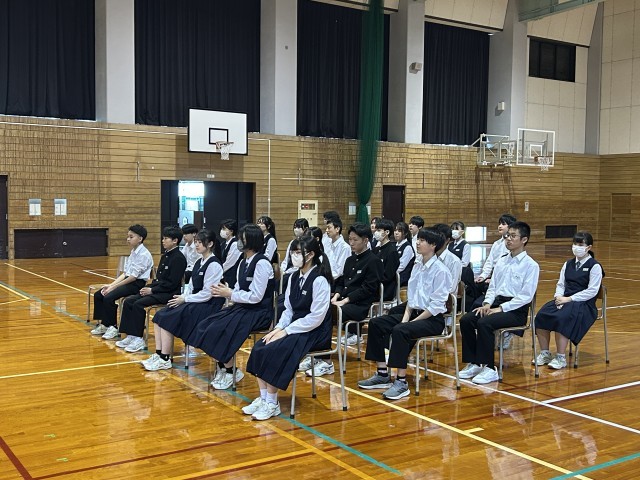 修学旅行の結団式を行いました。明日に向けて、実行委員から意気込みや大切にしたい気持ちを、伝えてもらいました。
