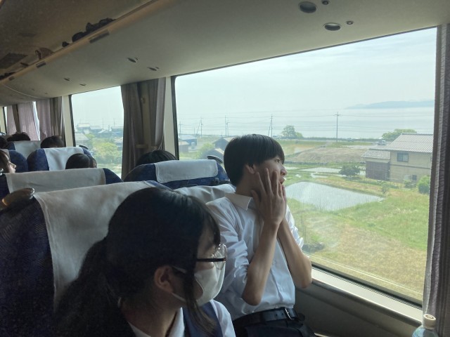 車窓から見えた琵琶湖の大きさに驚いていました。