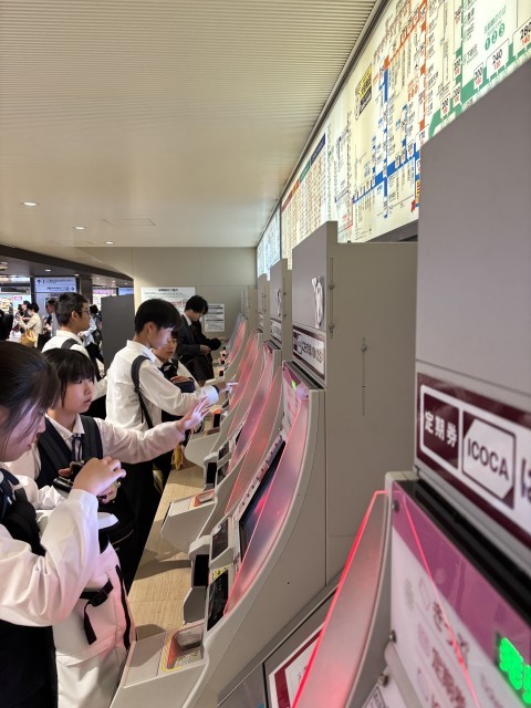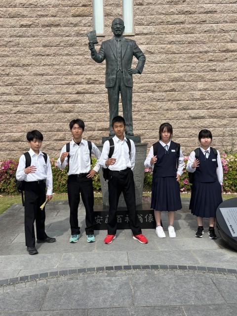 修学旅行 カップヌードルミュージアム到着 公開日 2025/05/15 更新日 2025/05/15 3年生 ラッシュアワーの中、スムーズに梅田駅乗り換えして、無事に池田のカップヌードルに到着しました。これから、マイカップヌードルづくりが始まります。