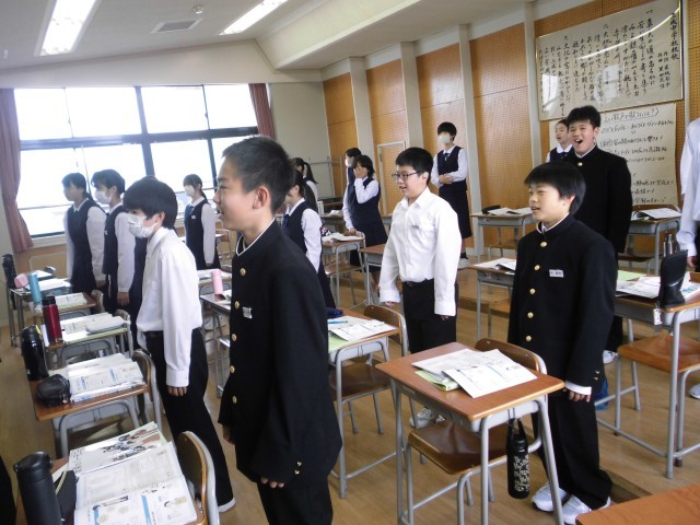 学習の様子 1年 公開日 2025/05/16 更新日 2025/05/16 1年生 音楽 映画音楽を聴きました。聴き取ったこと(根拠)と感じ取ったことを分けて考えられる生徒がたくさんいました。校歌の練習も進んでいます。