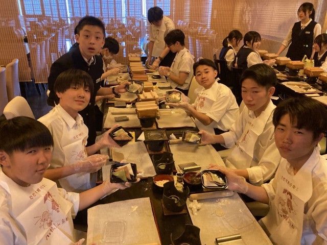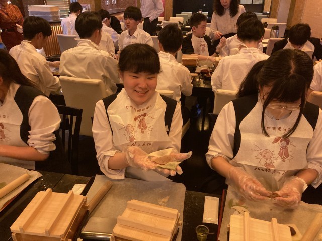 手作りの生八ツ橋はこの後持ち帰ります。土産話とともにご家庭でお楽しみください。