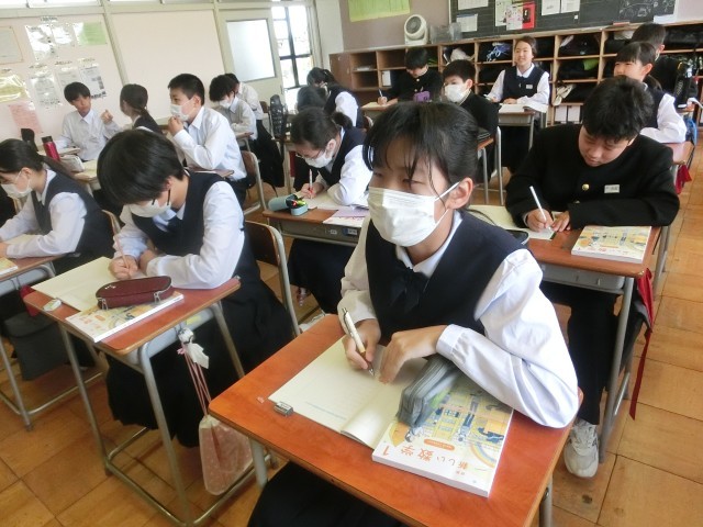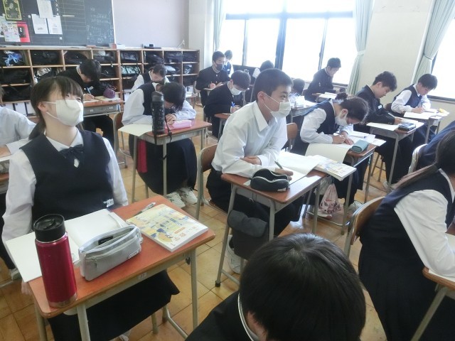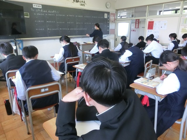 学習の様子 1年 公開日 2025/05/19 更新日 2025/05/19 1年生 数学 加法・減法の計算問題にたくさん取り組みました。次回からは正負の数の乗法に入ります。加法・減法で苦手が残っている人はしっかり復習しておきましょう。