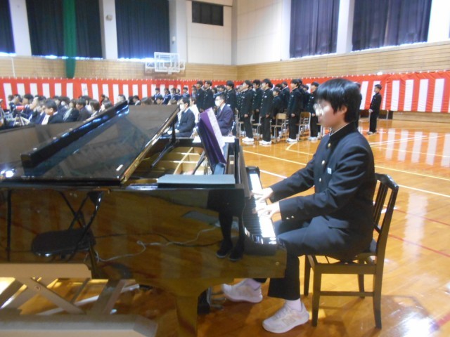 長い2学期も終わりの日を迎え、校歌の伴奏も3年生から2年生にバトンタッチしました。