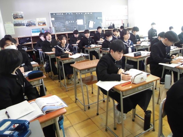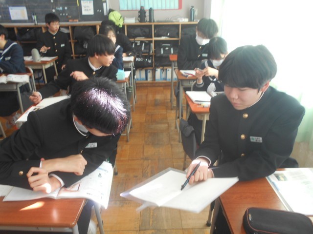 数学 昨日の実力テストが返却されました。慣れない40点満点のテストに戸惑っている様子でした。一年後に向け、徐々に慣れていきましょうね。