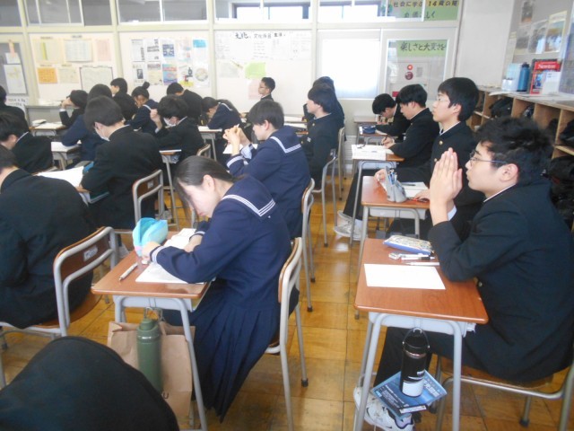 石原さんがご家族から聞かれた原爆投下時のお話や中学生のみなさんに願うことを真剣に聞いていました。