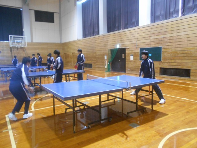 体育 今日は、女子がバドミントン、男子は卓球に取り組んでいました。