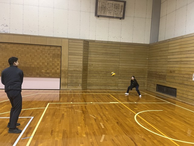 アタックの練習をしている様子です。少人数でも、声を掛け合いながら効率よく練習を行いました。