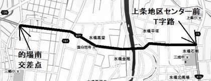 ・上条地区センター前T字路から的場南の交差点までの自転車通行可となっている歩道に残雪がある場合。