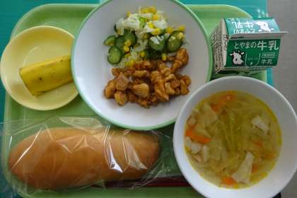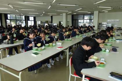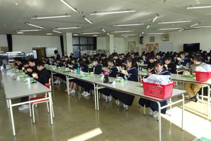 ランチルームでは1・2年生が給食を食べています。給食週間の献立はいかがですか?明日は最終日です。どんな本のどんな献立でしょうか?楽しみですね。