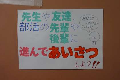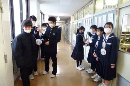今週は生徒会が、全校生徒一人一人が元気にあいさつをし、学校全体を明るくすることを目的に「あいさつWeek」の取組を行いました。明日は最終日で「あいさつリレー」という新たな取組を行います。