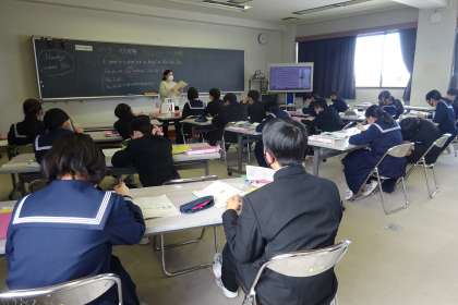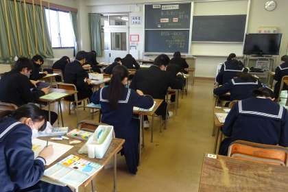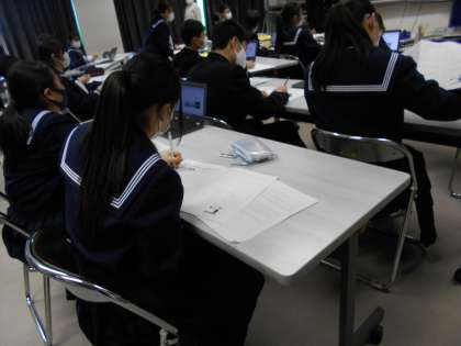 今日は、これまで総合的な学習の時間を使って行ってきた「上級学校調べ」の学級発表会です。