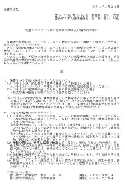 新型コロナウイルスの感染拡大防止及び協力のお願い