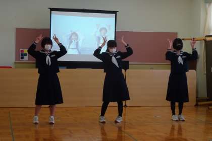 ダンスの発表会がありました。担任の先生も招待され見学しました。写真は女子のグループです。フォーメーションも次々と変えて上手に踊りました。 -