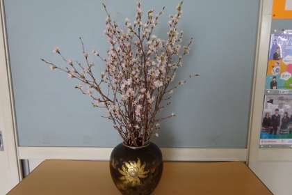 1月の天候は昨年と変わりないと思いますが、3年生の教室前に飾られている啓翁桜の開花が早い気がします。できれば昨年のように卒業式まで咲いていてほしいのですが・・・(祈) -