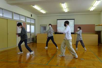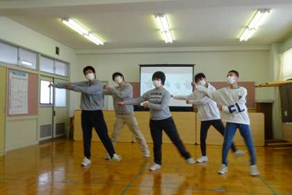 男子のグループです。動きが揃っています。ギャラリーから応援の手拍子もありました。 -