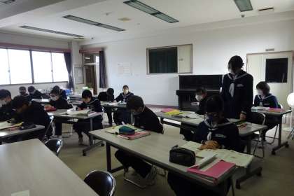 今日は、別室で卒業式で歌う合唱のパート練習を行いました。パート練習を行っているパート以外の生徒は、音楽室で「お気に入りの曲紹介」を、自分のクロムブックで調べて作成しました。 -