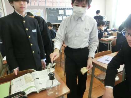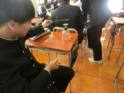 理科 静電気を起こす実験をしています。