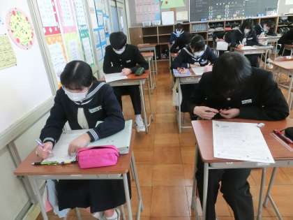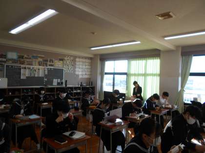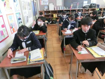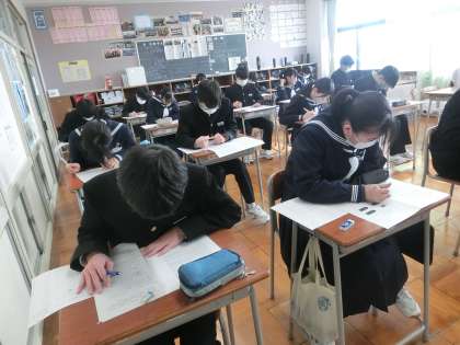 国語 詩歌のプリントに取り組んでいます。