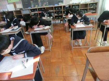 明日の私立高校一般入試に向けての激励会の様子です。