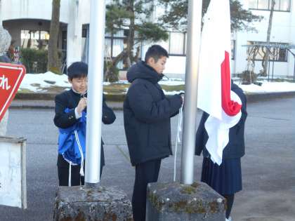 下:国旗・校旗の掲揚の様子です。 -
