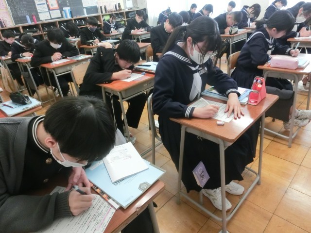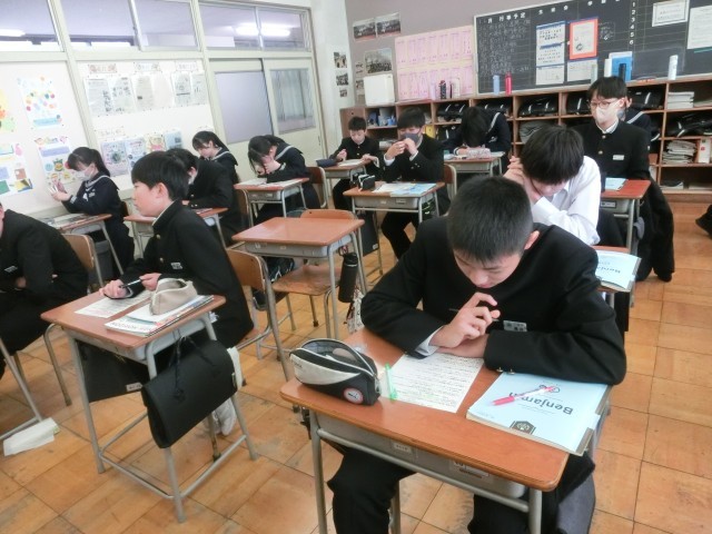 音楽 卒業式に向けて、国歌、校歌、合唱曲「unrimited」の練習が始まりました。今日はパートに分かれ、音取りを頑張っていました。