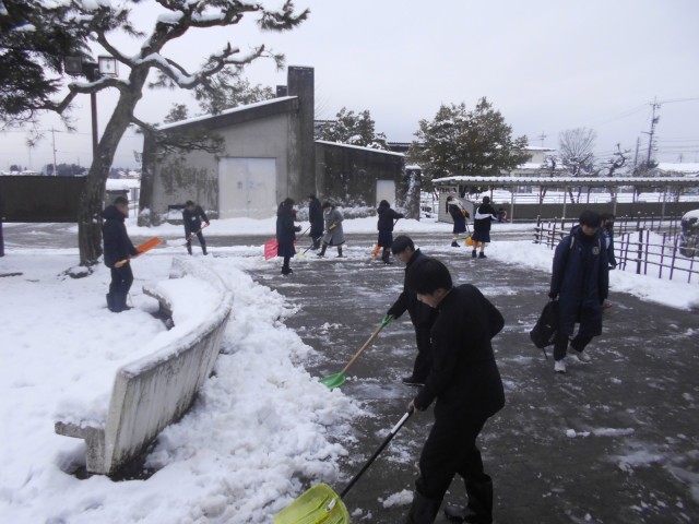 早朝から精力的に動いてくれました。水分が多く重い雪でしたが、あっという間に玄関付近がきれいになりました。協力してくれた皆さん、ありがとうございました。